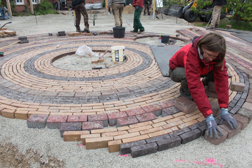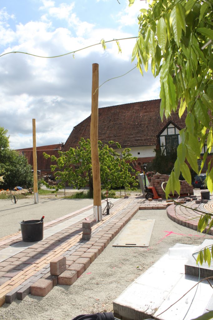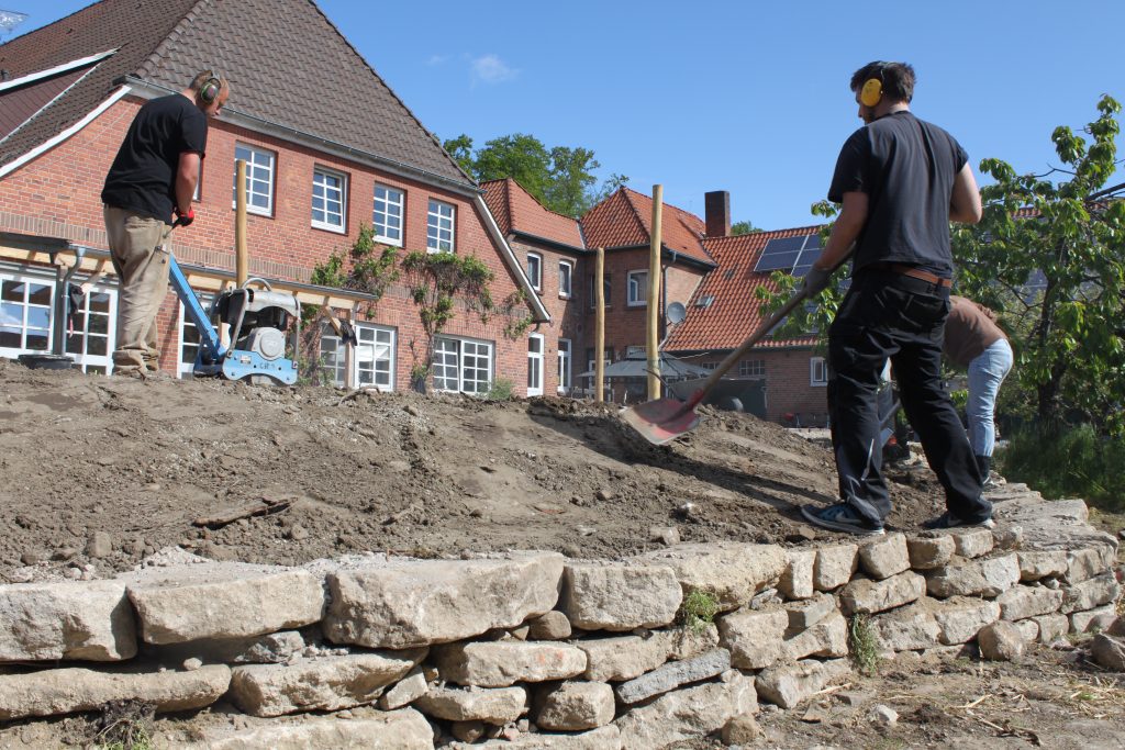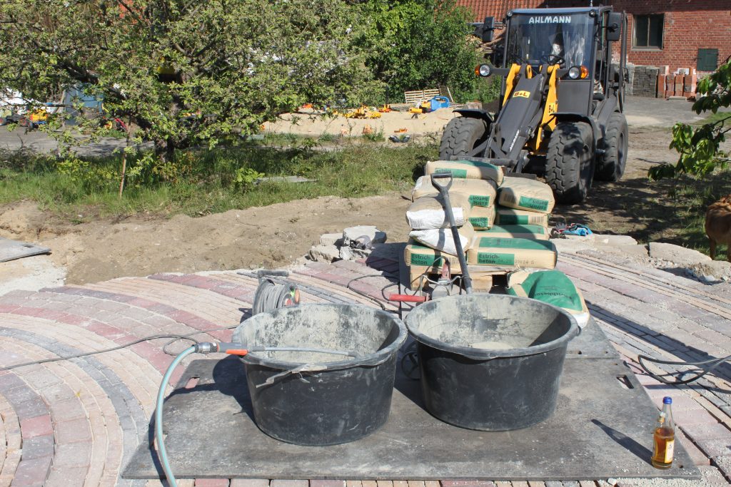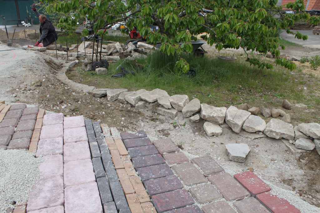 Und wir verwenden natürlich nicht nur langweilige graue monotone Pflastersteine. Der Baustoffhandel Mölders hat uns sogenannte Restepaletten verschiedenster Pflastersteine gespendet. Diese wären ansonsten entsorgt worden und sorgen nun dafür, dass wir uns beim Muster der Pflasterung kreativ ausleben können. Vielen Dank dafür!