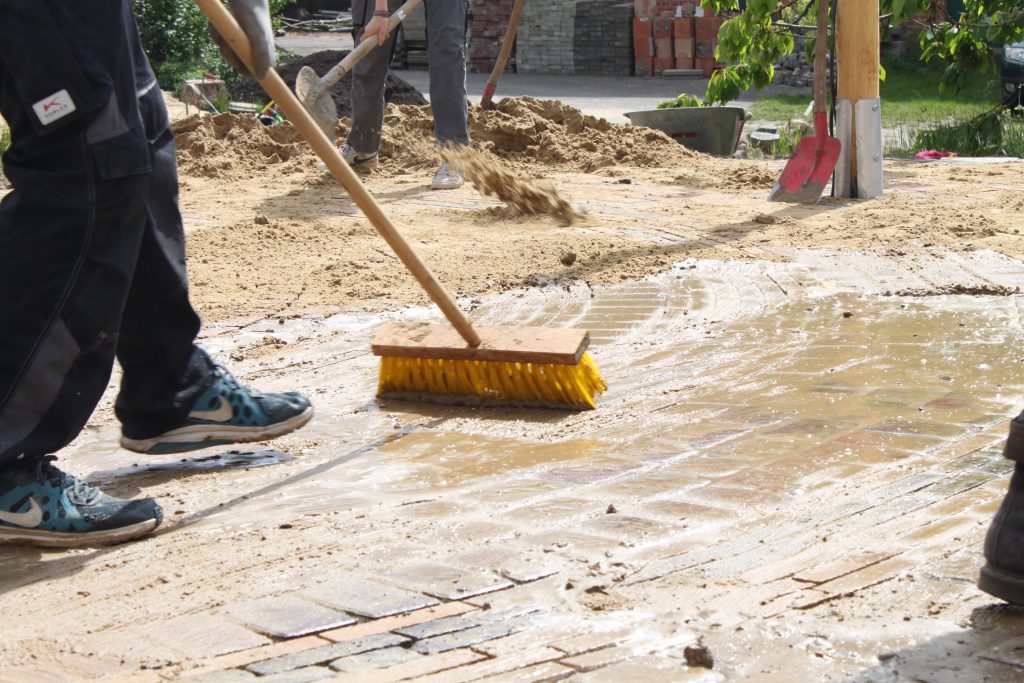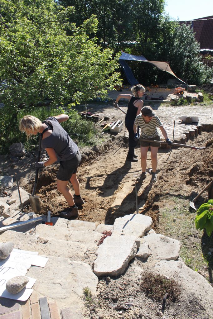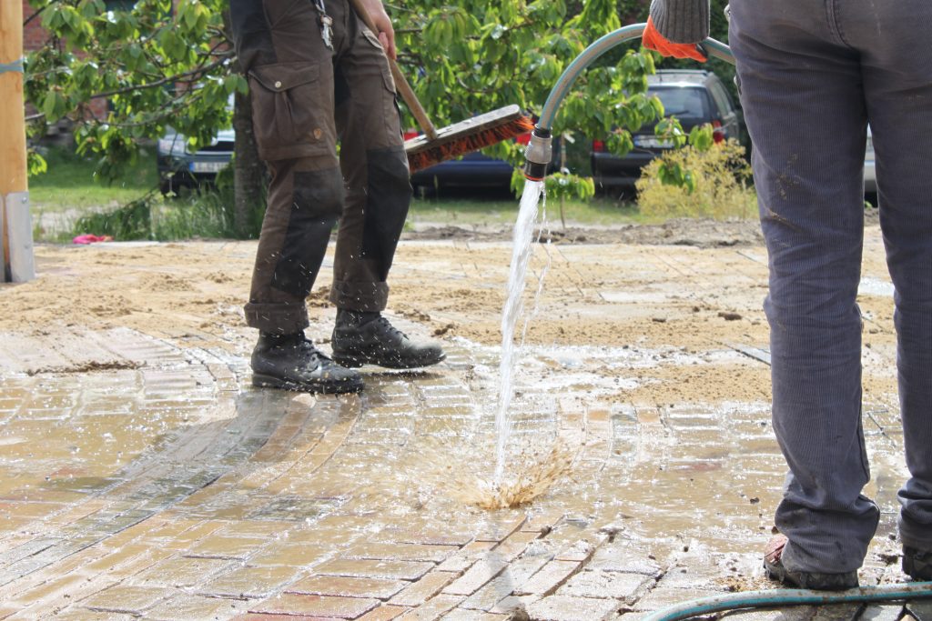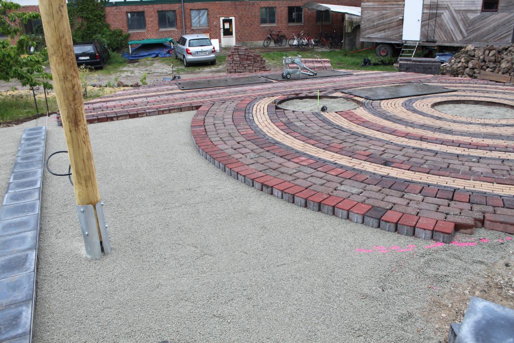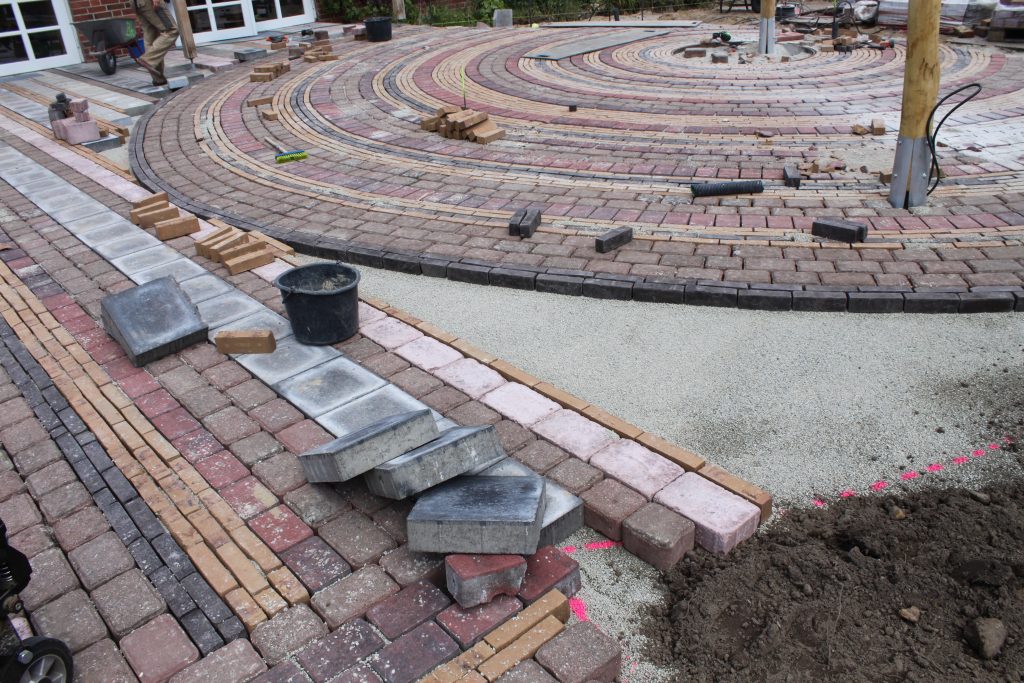 Und wir verwenden natürlich nicht nur langweilige graue monotone Pflastersteine. Der Baustoffhandel Mölders hat uns sogenannte Restepaletten verschiedenster Pflastersteine gespendet. Diese wären ansonsten entsorgt worden und sorgen nun dafür, dass wir uns beim Muster der Pflasterung kreativ ausleben können. Vielen Dank dafür!