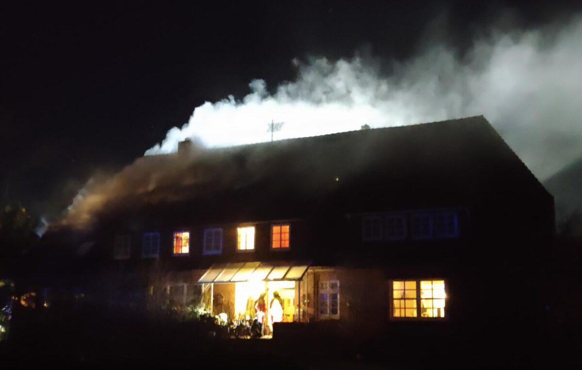 Es waren gleich mehrere Feuerwehren im Einsatz – insgesamt mit über 80 Einsatzkräften! Das Haus steht noch und wir können sogar die Hofküche wieder nutzen. Auch die drei kleinen Wohneinheiten auf dieser Seite des Hauses wurden verschont. Bis der Rest des Gebäude wieder bewohnbar ist, werden allerdings ersten Schätzungen zufolge Monate vergehen.